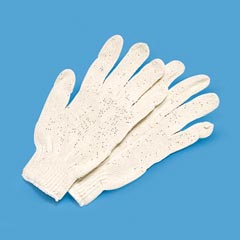 Cotton/polyester blend gloves ideal as a liner in cold applications or for general purpose use. Natural color, reversible.