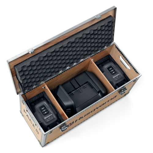 This is a kit with two B380X PACE batteries and one C900X PACE charger. B380X PACE is a high power battery with a capacity of 375 Wh and C900X PACE is a high power battery charger with a capacity of 900 W. Fast charging with active cooling of the battery. Equipped with built-in connectivity so you can easily monitor state of charge, runtime, location and receive wireless updates through FOTA (firmware over the air).