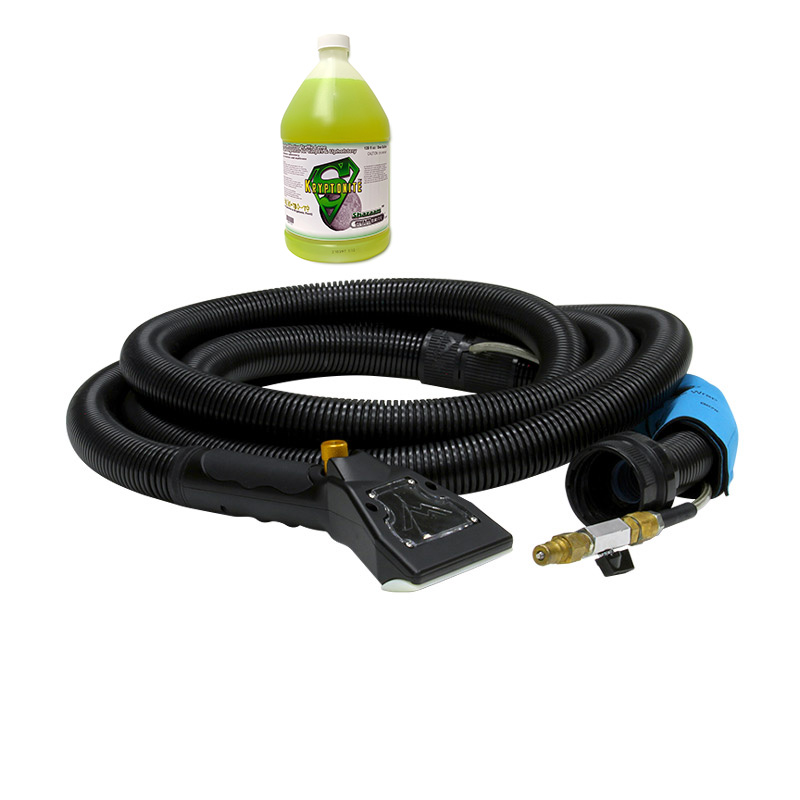 • Pre-installed on an extra flexible 15 ft. vacuum and solution hose combo.