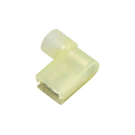 Yellow 90 degree Clear Nylon-Insulated, Female Flag Solderless Crimp Terminal 622245 .25" or 1/4" Wide